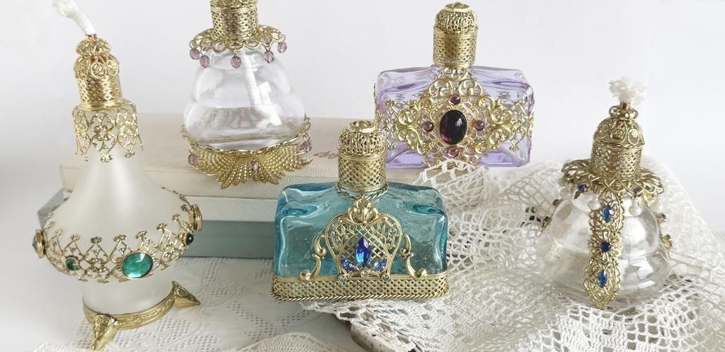 チェコ 装飾付き香水瓶 420 ピンク×手