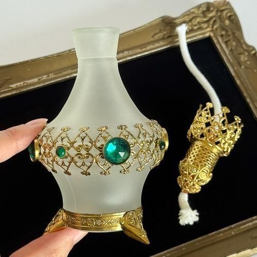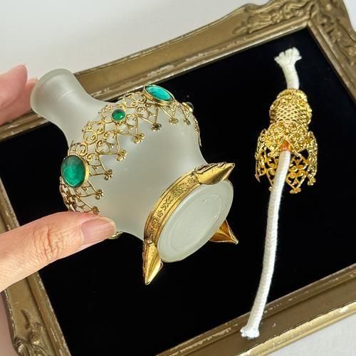 素材はガラスと真鍮ですので、製作者によるとアルコールやオイルを入れても問題はないとされていますが、当店で試してはおりませんので、置物としての販売とさせていただきます。