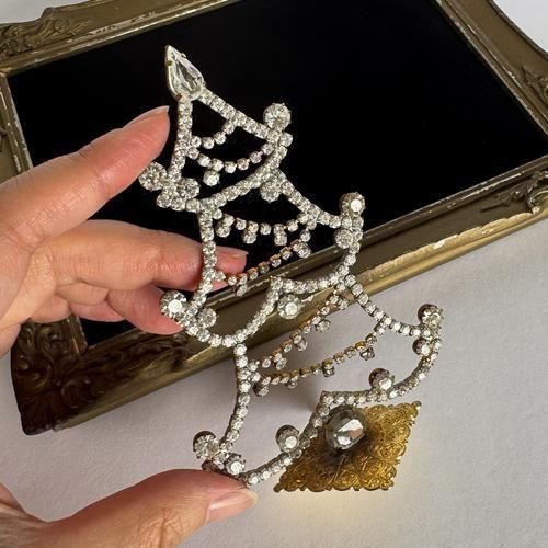昔ながらの作り方で、ひとつひとつラインストーンや金属枠を組み合わせて溶接し、大きなガラスストーンは手でツメを留めて手作りで作られています。