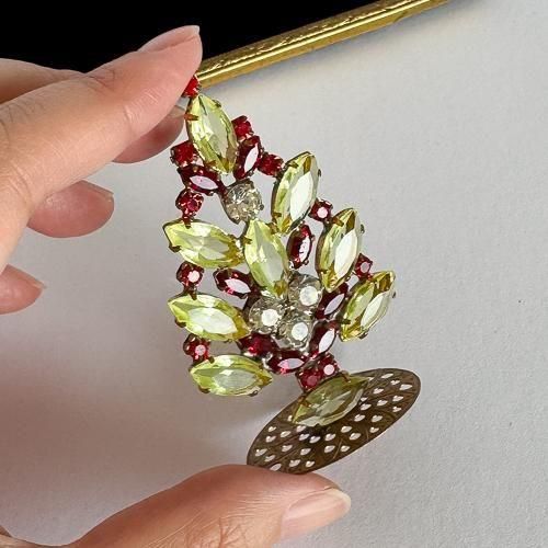 昔ながらの作り方で、ひとつひとつラインストーンや金属枠を組み合わせて溶接し、大きなガラスストーンは手でツメを留めて手作りで作られています。